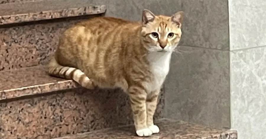 孕貓被棄后每日守單元樓,遠遠跟在舊主身后,見它用身體護三只奶貓,立刻做了一個暖心決定