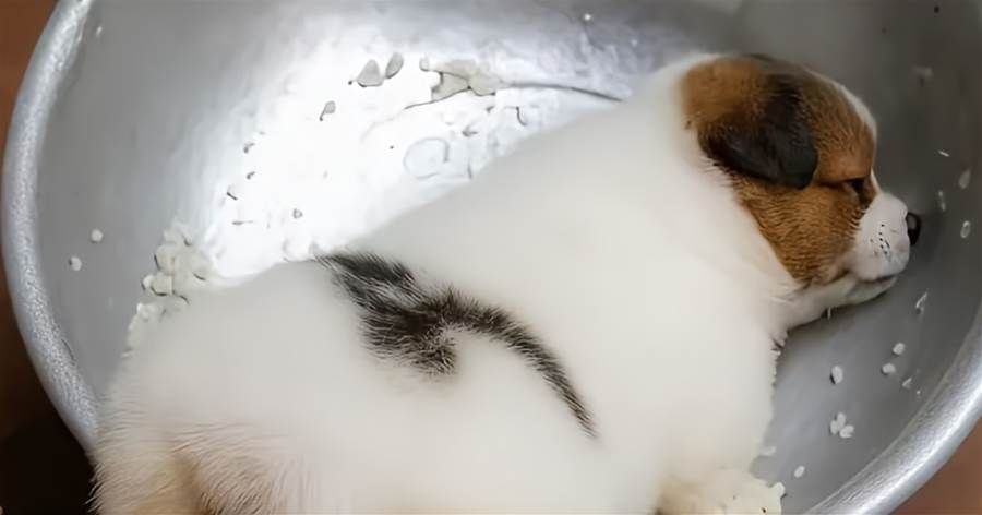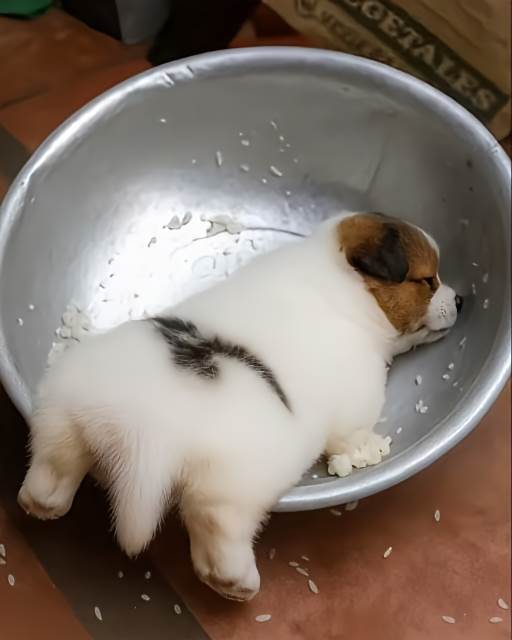 那天中午的戲碼,尤其經典。剛把糧倒進盆裡,牠便一頭「扎」進美食江湖,專心致志,連頭都捨不得抬。不過幾分鐘,盆裡便清潔溜溜。正當我準備收拾「戰場」時,眼前畫面讓我瞬間融化——這小傢伙竟直接把狗盆當成枕頭,整個身子軟趴趴地窩了進去,眼皮漸漸沉重,就這麼睡著了!