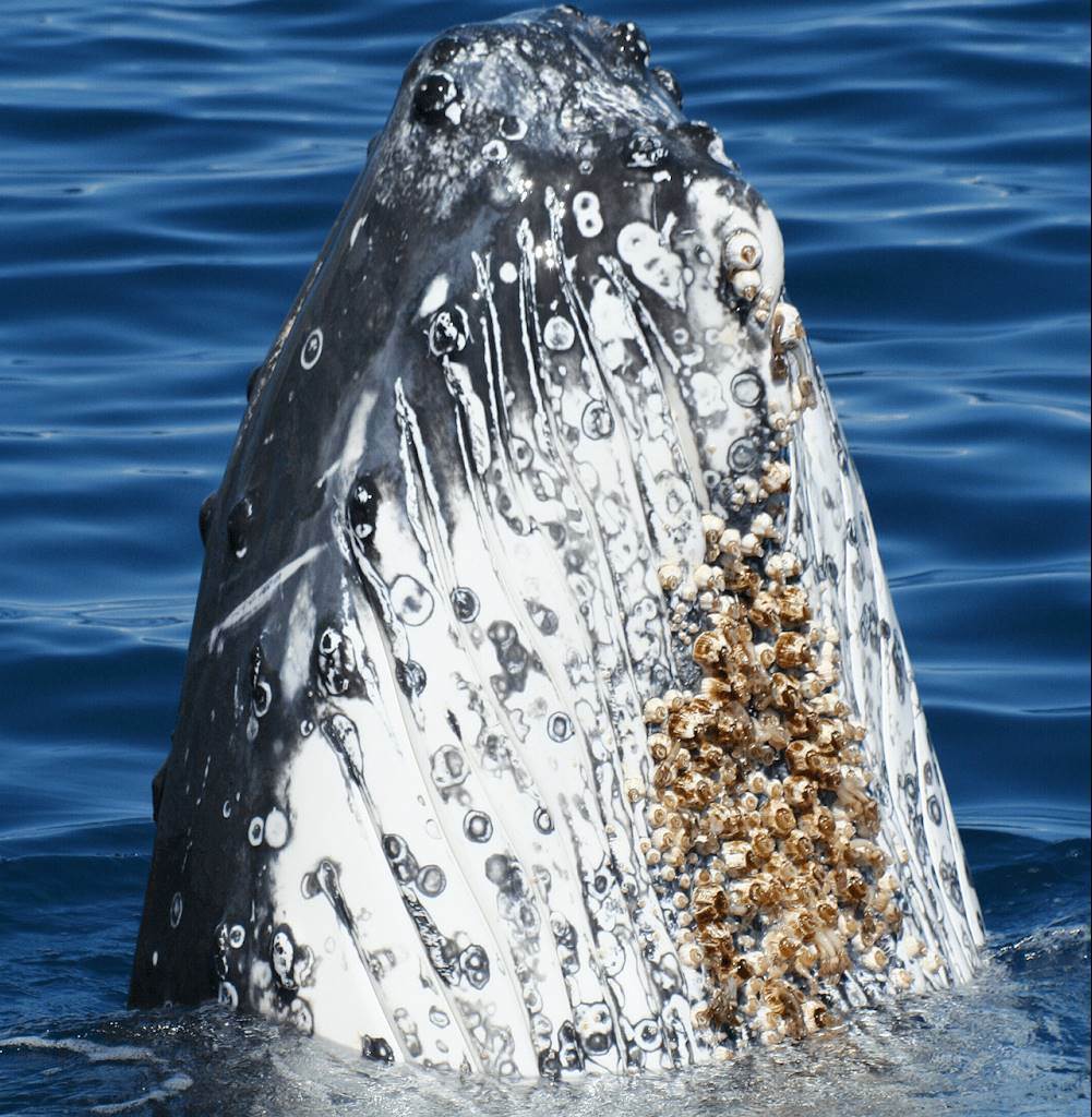 海洋中的藤壺是一種通過寄生借助其他動物獲取食物的生物。它們喜歡寄生在移動速度較慢的動物上,如海龜和鯨魚。由于藤壺長到成體后失去了移動能力,它們需要粘附在固定物體上。它們的幼體會黏附在海龜和鯨魚身上,利用它們的運動來更好地覓食。