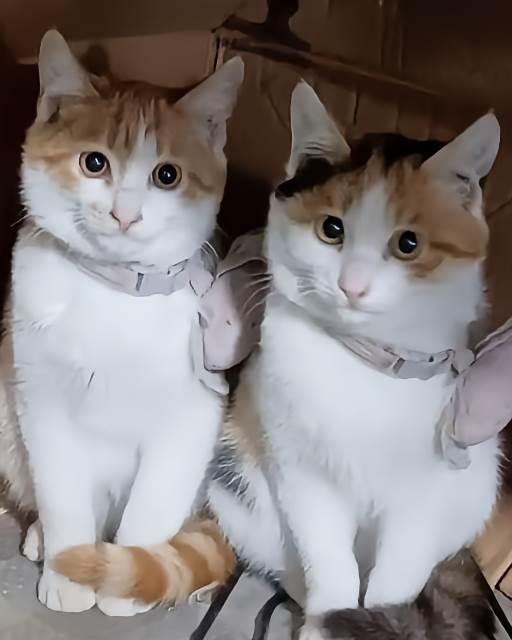兩隻貓挨在一起,毛色乾淨,眼神明亮。雖不是名貴品種,但一隻尾巴雪白,一隻尾巴淡橘,模樣討喜又親密。牠們看到陌生人也不躲,反而輕聲「喵」了一下,像在打招呼。我還在猶豫,身旁的妻子忽然開口:「我們接牠們回家吧,錢的事,就這樣清了。」