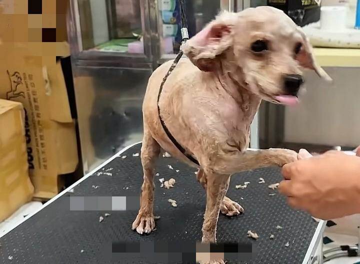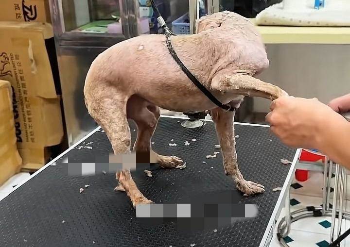 來到寵物店,醫生看到眼前這個小家夥也嚇了一跳,狗狗全程配合又乖巧,哪怕剃毛器在它身上來來回回滑動,發出嗡嗡的聲音它也一動不動的配合著,只是偶爾眨眨眼睛。