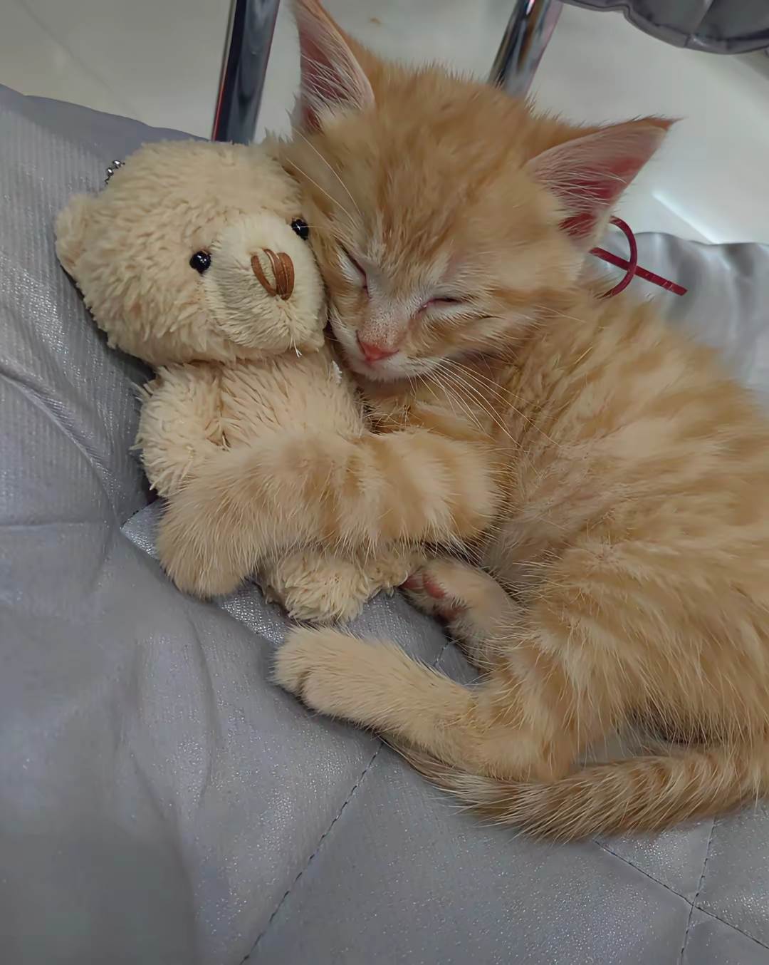 這半個月來,小橘貓每天都抱著那個布娃娃,吃飯時把娃娃放在旁邊,睡覺也得摟著。有次我看見它用小舌頭舔布娃娃的耳朵,像極了小時候我兒子抱著我脖子撒嬌的模樣。我知道,它還在想媽媽,那個布娃娃,是它對媽媽最后的念想。