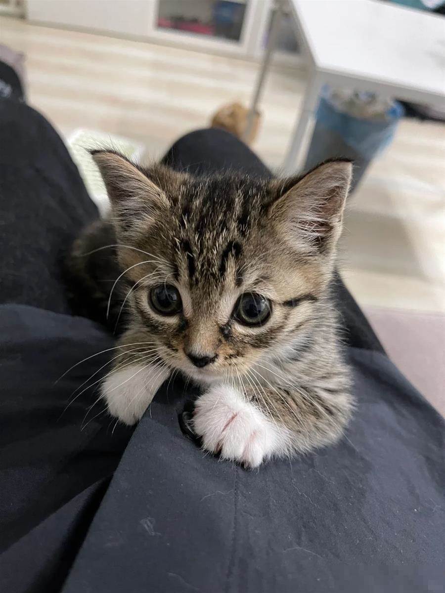 現在的粘粘,早就成了家里的 「小寶貝」。它特別懂事,不僅會用貓砂,還從不吵鬧,偶爾還會用小腦袋頂頂我們的手,撒嬌要抱抱。