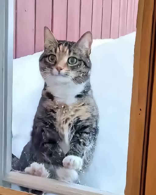 那一刻,屋內的暖意與窗外的嚴寒,小貓的無助與小哥哥的愜意,形成了強烈的對比,小哥哥心裡的柔軟被瞬間觸動,滿心都是憐憫。他忍不住想起,這樣零下的低溫,這樣漫天的風雪,這只無家可歸的小貓,若是沒有人伸出援手,恐怕連這個寒冬都熬不過去。