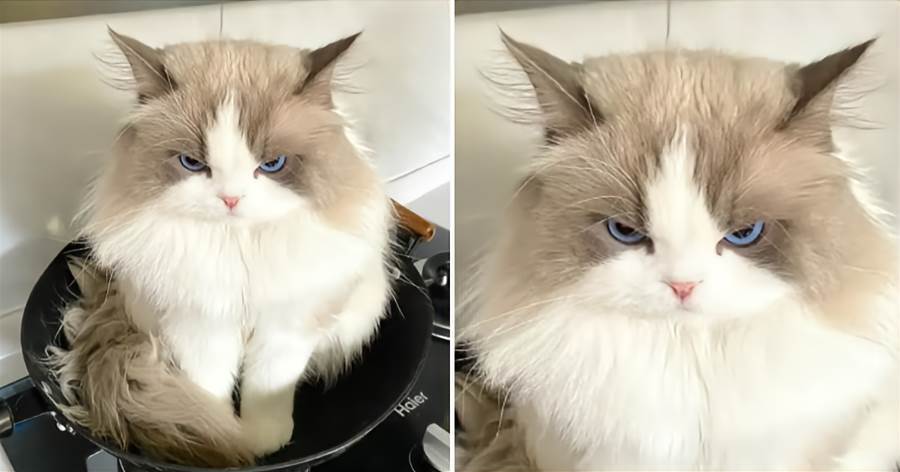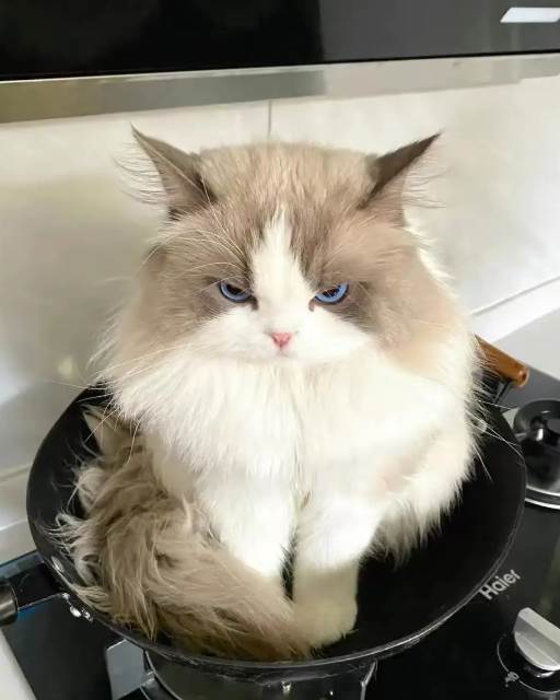 走進去,眼前的畫面讓我愣在原地——我家那位貓主子,正端端正正坐在炒鍋正中央,背對著我,一動不動。我輕喚牠的名字,沒有回應;伸手想摸,牠微微側身避開,只留給我一個堅決的背影。