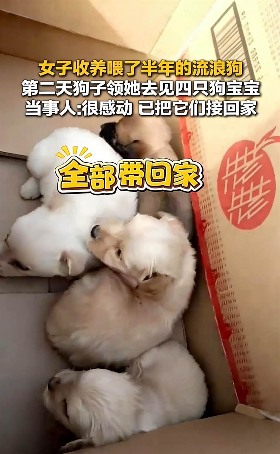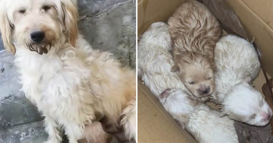 小花輕輕扒開一個紙箱,我探頭一看,瞬間紅了眼眶——四隻巴掌大的小狗蜷縮在乾草上,眼睛還沒睜開,粉嘟嘟的格外可愛。小花跳進紙箱舔了舔寶寶們,又抬頭看我,眼神溫柔又堅定,像在說「我把孩子帶來給你了」。