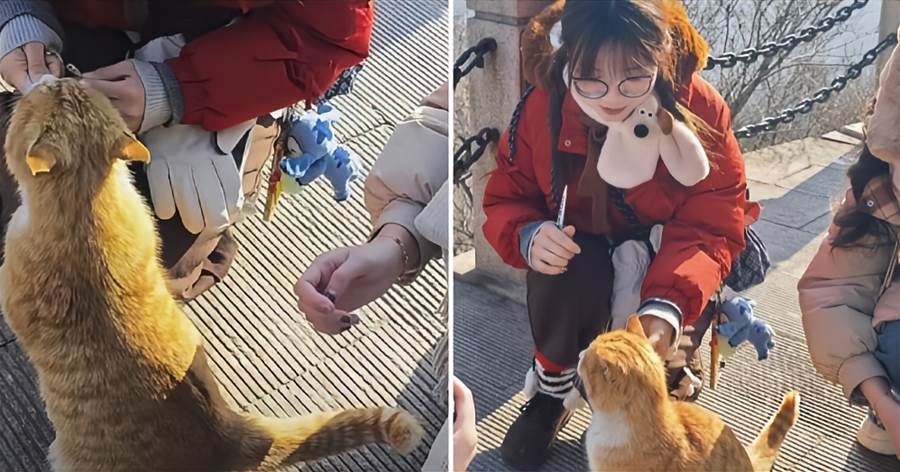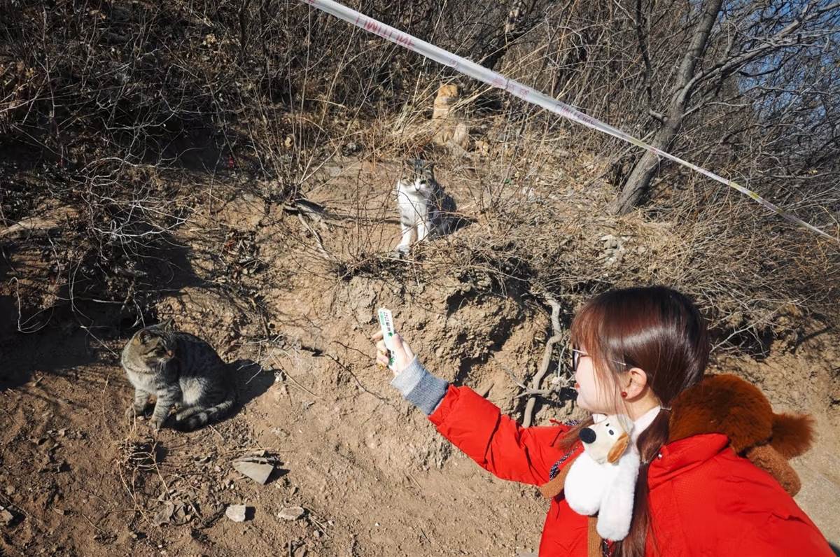 「我第一次看到長城貓時驚呆了,它們比我家養的貓還要胖!」來自上海的遊客李女士笑著說,「我帶了貓糧和貓條,它們吃得可香了,吃完還會蹭我的褲腿表示感謝。」