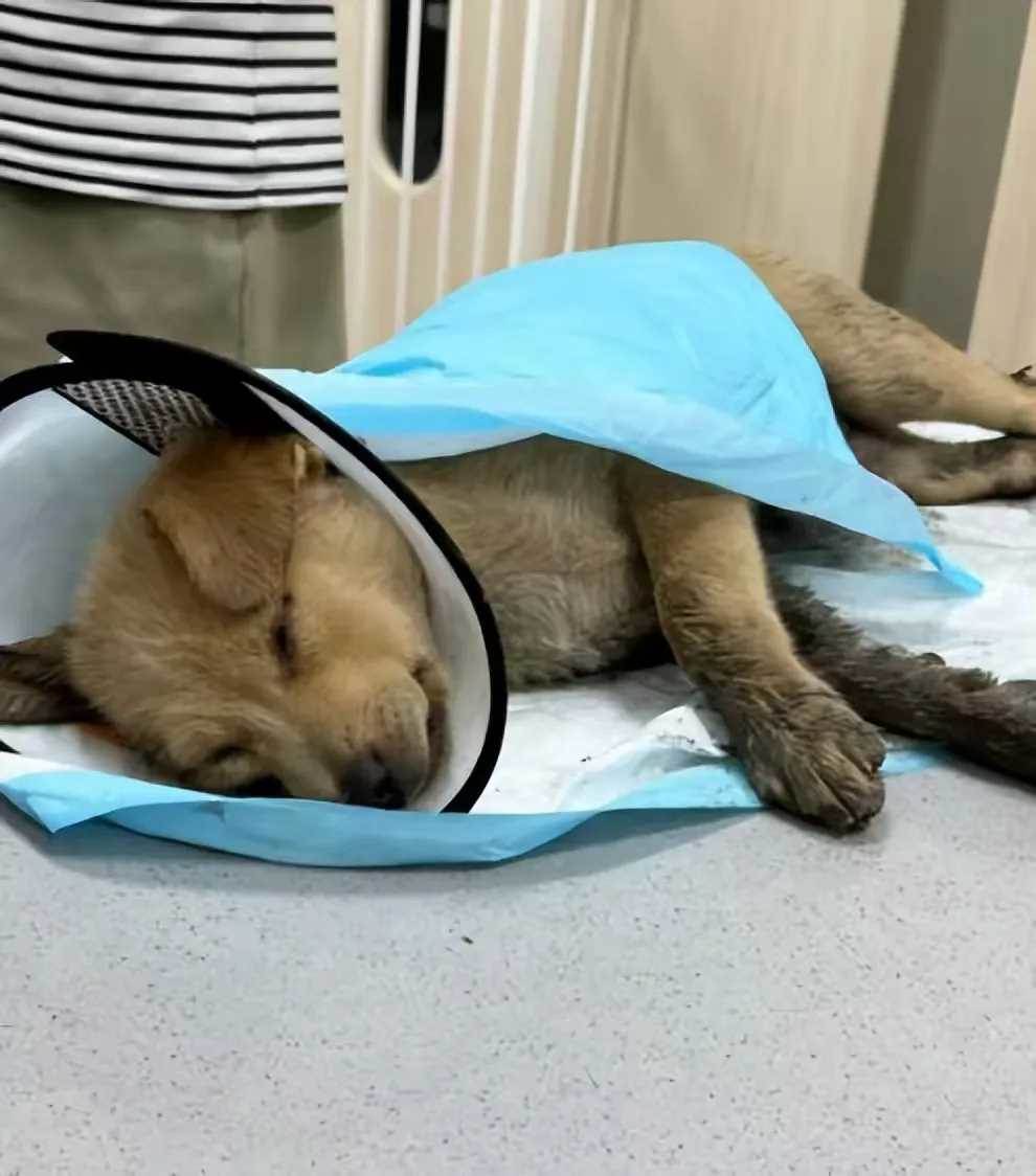 小哥蹲下身,輕輕試探著觸碰狗狗的身體,當碰到它的後腿時,狗狗發出一聲淒厲的慘叫,身體劇烈顫抖起來。小哥心裡一疼,立刻停下動作,他能明顯感覺到,狗狗的兩條後腿已經完全無法動彈,大機率是骨折了,甚至可能傷得更重。他不敢耽擱,當即脫下自己的外套,小心翼翼地將狗狗裹起來,動作輕柔得像對待一件稀世珍寶,生怕不小心碰疼它,然後快步朝著附近的寵物醫院跑去。