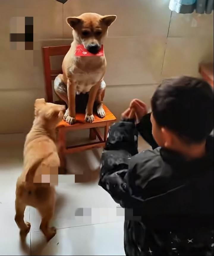 每到春節,小主人都要給狗狗請上椅子上,然後給狗狗畢恭畢敬的磕三個響頭,還會給狗狗一個大大的紅包,來表達對它的救命之恩。