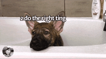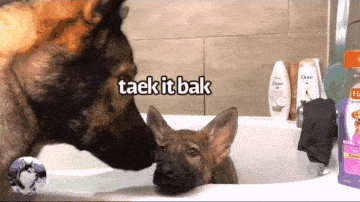 鏟屎官不停安撫它,並告訴德牧媽媽,自己只是給它孩子洗個澡,讓狗媽不用擔心,但是德牧媽媽就是不聽,然後攔在了浴缸前面。