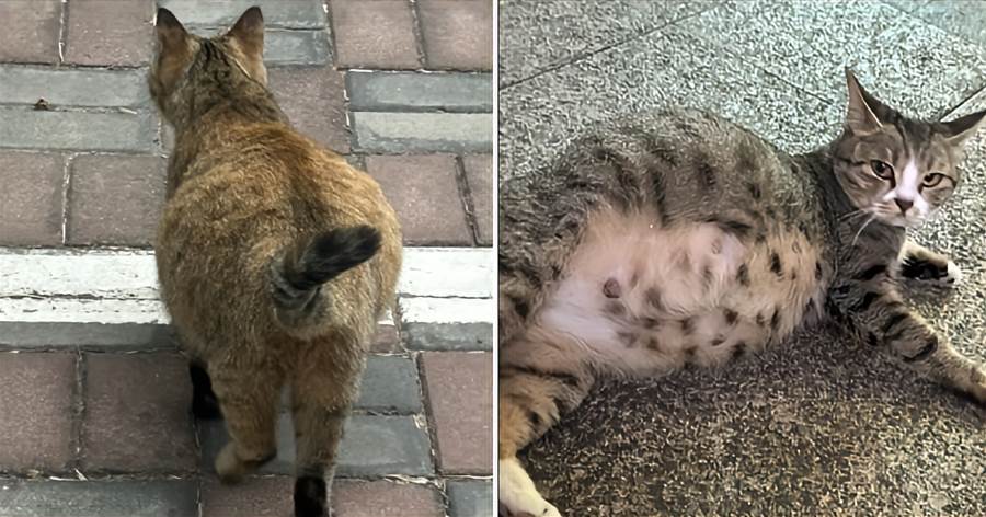 城市角落的垃圾桶旁,一隻橘貓警惕地張望四周,腹部圓滾滾地垂下來。她的步伐因為沉重的身體而變得緩慢,每走幾步就要停下來喘氣。不遠處,一個提著塑料袋的女人悄悄靠近,輕輕呼喚著:「花花,今天有魚哦。」