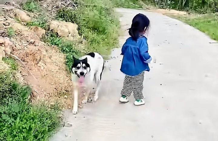 分別時的小女孩捨不得它,在竹林邊放聲大哭,這一次通人性的狗狗停下了回家的腳步,遲疑片刻後,竟然追了上來,它默默地跟著母女倆穿過竹林走上公路,一直走到小女孩家附近才停住腳步。