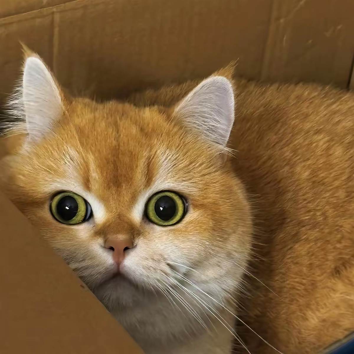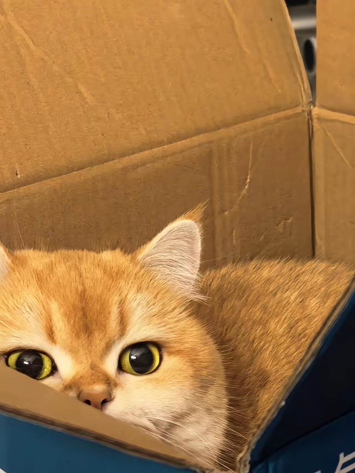 起初我心裡還有些忐忑,畢竟自己從未養過貓,更別說是品種貓。誰知道,牠來的第二天,我下班後竟不自覺地坐到牠旁邊,連手機都不碰了,只是靜靜看著牠發呆、玩紙箱、或蜷在角落打盹。那身金黃漸層的毛在燈下閃著暖光,眼神清亮亮的,偶爾抬頭看我一眼,又繼續做自己的事——明明只是安靜存在,卻讓整個房間都溫柔了起來。