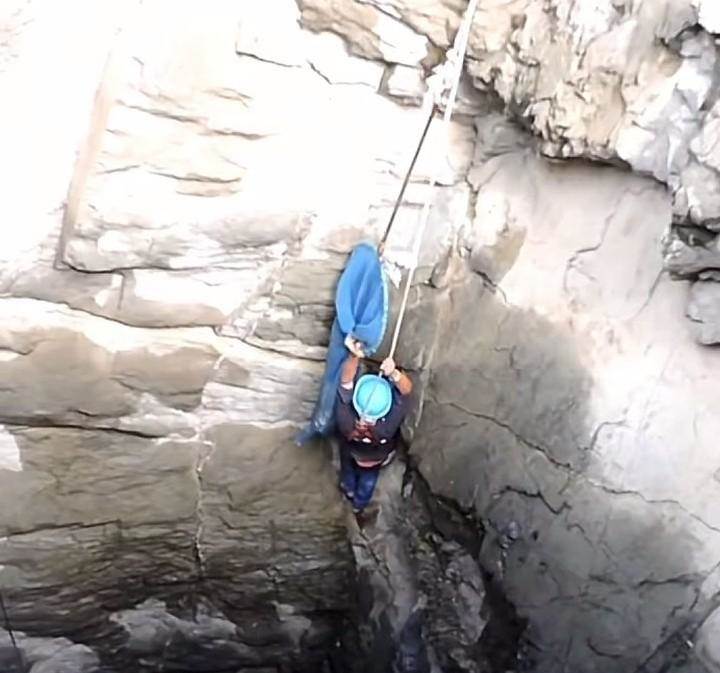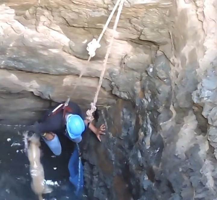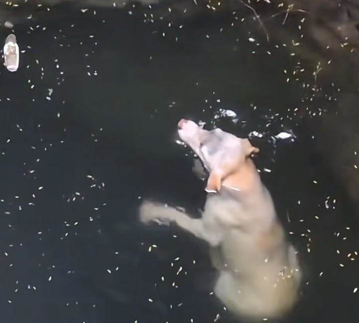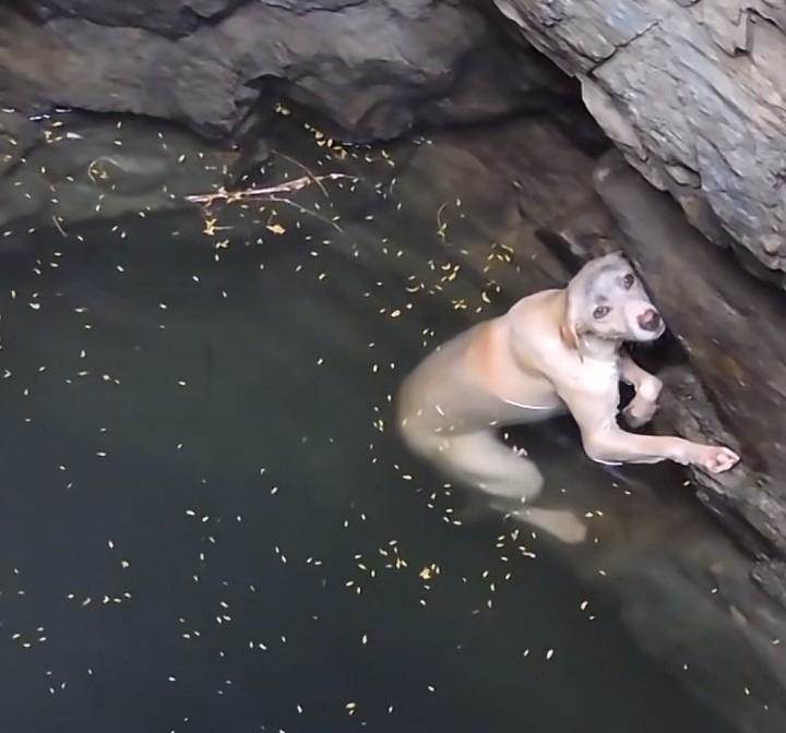 救援人員試圖將它從這冰冷的井底救起,儘管井壁很光滑無從落腳,但男子仍然慢慢向著狗子靠近,或許狗子體會到人類的好心,當男子靠近它時,它主動遊向男子,男子藉助操網的幫助,快速將狗狗放進操網中,隨即岸上的同伴快速提起裝有狗狗的操網,男子同時也慢慢藉助岸上同伴的幫助向上攀巖。就這樣一人一狗慢慢從冰冷的井底向岸邊轉移。
