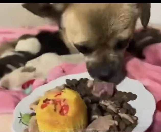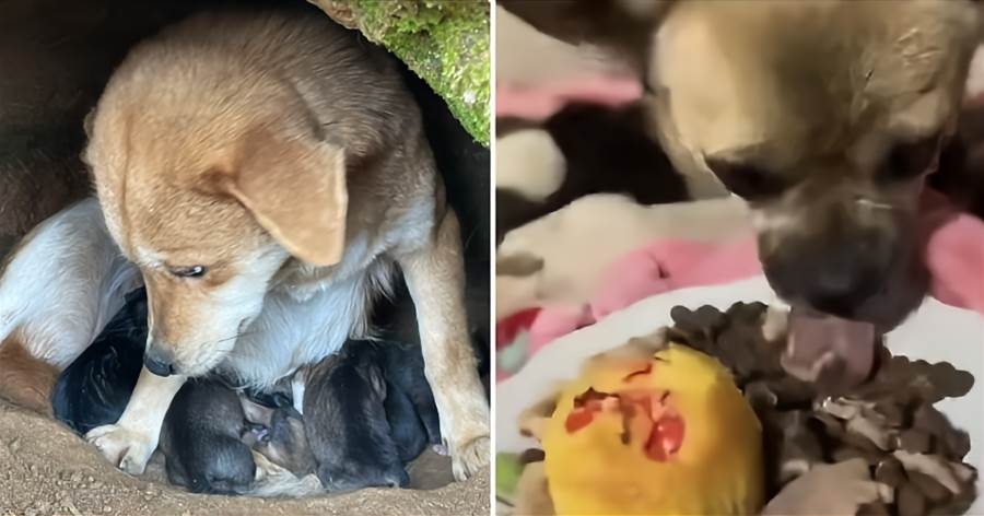 當時我心裡又酸又暖,立刻把狗媽媽和小奶狗們都抱回了家。鋪上軟乎乎的毯子,準備了滿滿一盆肉和營養膏。狗媽媽終于肯吃東西了,可吃兩口就抬頭看看身邊的小狗,生怕孩子們受一點點委屈。