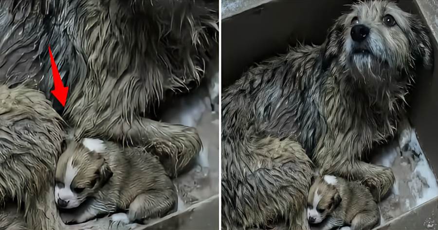 獲得自由的狗狗卻沒有立刻跑開,而是癱軟在地,將頭埋進前爪,身體劇烈起伏著,彷彿在無聲地哭泣。