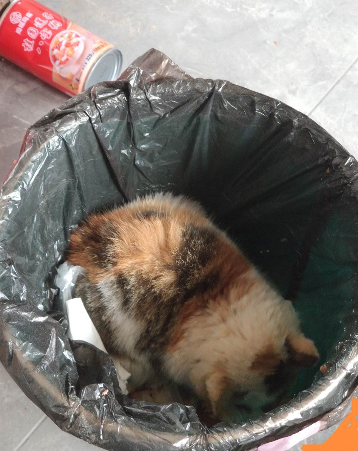 裝修的嘈雜聲、陌生的氣味、來來往往的工人……對一個迷路的小生命來說,這一切都太可怕了。它選擇躲在垃圾桶裡,或許因為那是唯一能給它安全感的地方——黑暗、狹窄、能把自己藏起來。