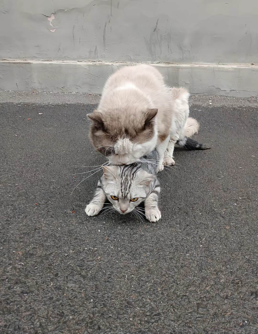 我蹲低想摸,隔壁茶餐廳老闆娘探頭話:「呢對貓姐妹喺附近半年啦,好乖嘅,唔會搞亂垃圾。不過⋯⋯」她欲言又止,「聽講之前生過兩胎,啲bb貓後來唔見咗。」