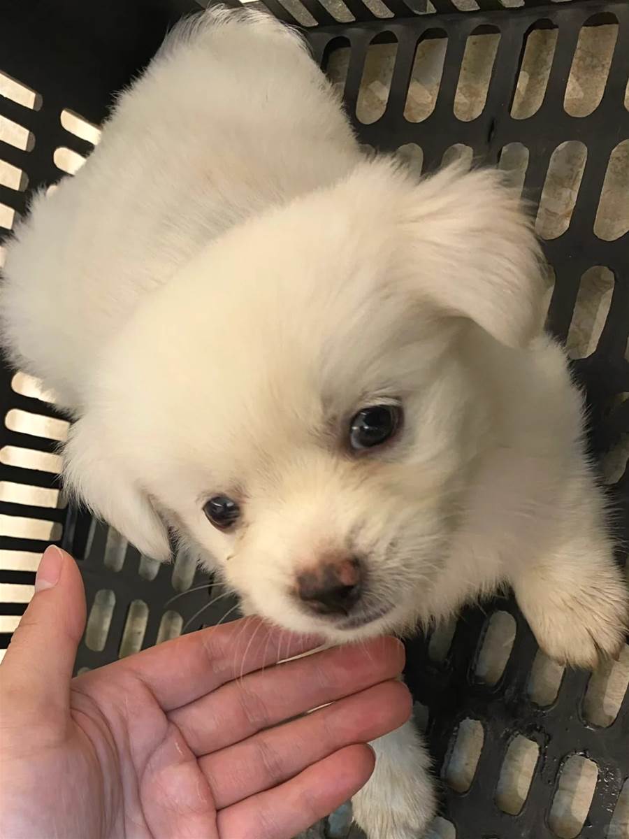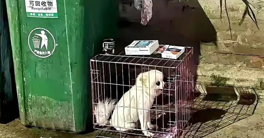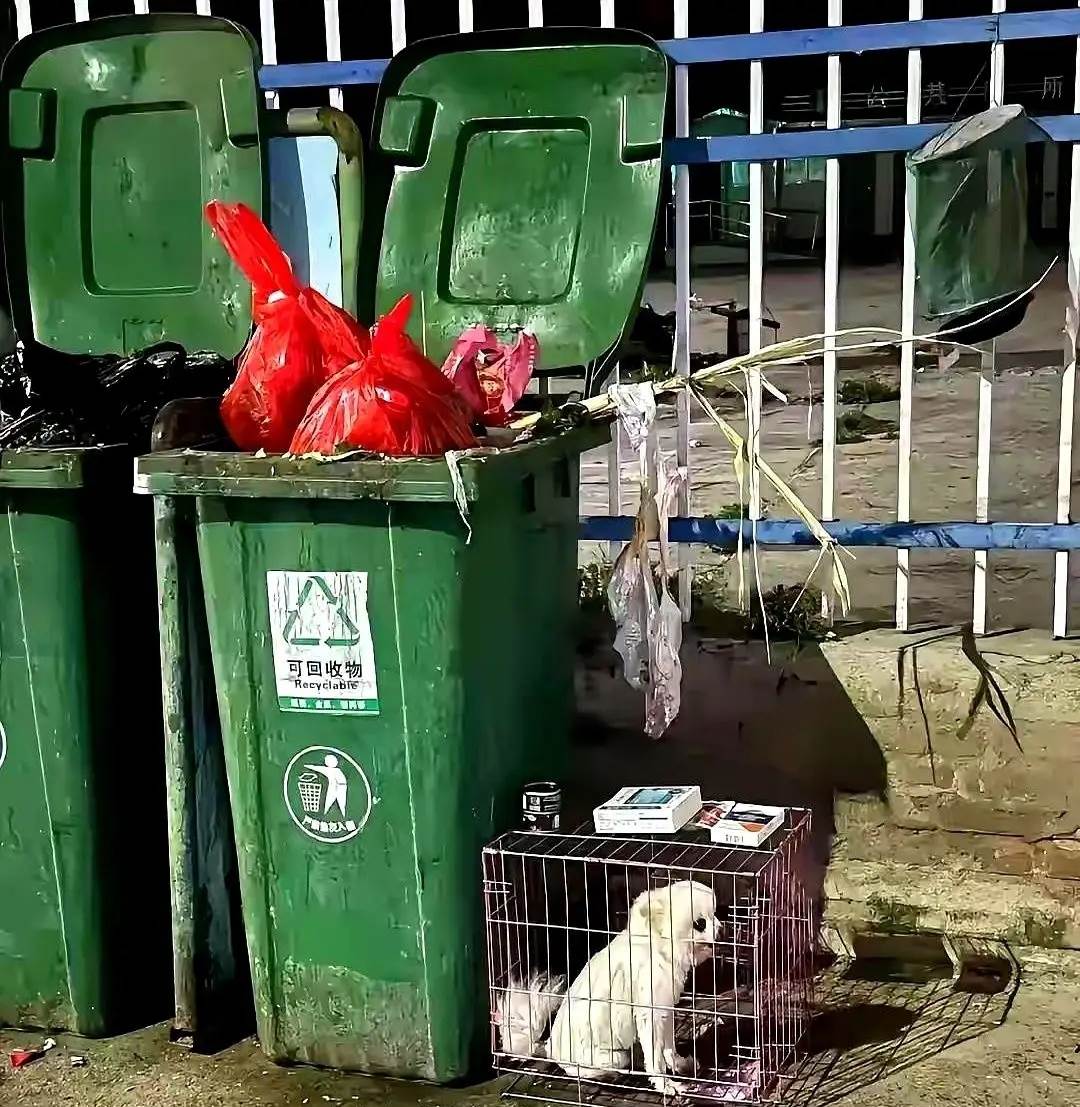 昨天傍晚下樓扔垃圾,剛走到單元樓門口的垃圾桶旁,就看見個鐵籠子放在地上 —— 里面縮著一只白色小狗,巴掌大的身子,毛沾了點灰,正趴在籠子角落,一雙黑溜溜的眼睛直勾勾地盯著來往的人,像在找什麼。