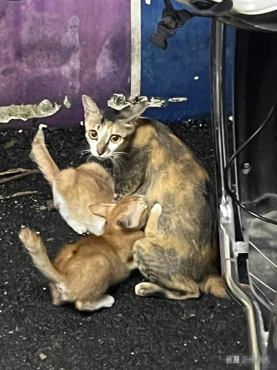 那天下午下班,我特意繞到綠化帶,果然在灌木叢深處,看到了一個簡陋的 「窩」—— 鋪著幾片枯葉和舊報紙,三只巴掌大的小奶貓蜷縮在里面,閉著眼睛,發出細細的 「嚶嚶」 聲。貓媽媽正蹲在旁邊,嘴里叼著一只剛找到的小蟲子,輕輕放在小貓面前,自己則舔了舔爪子,沒舍得吃一口。