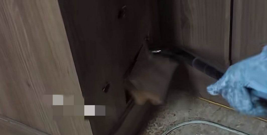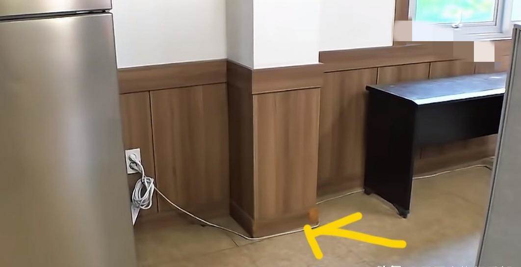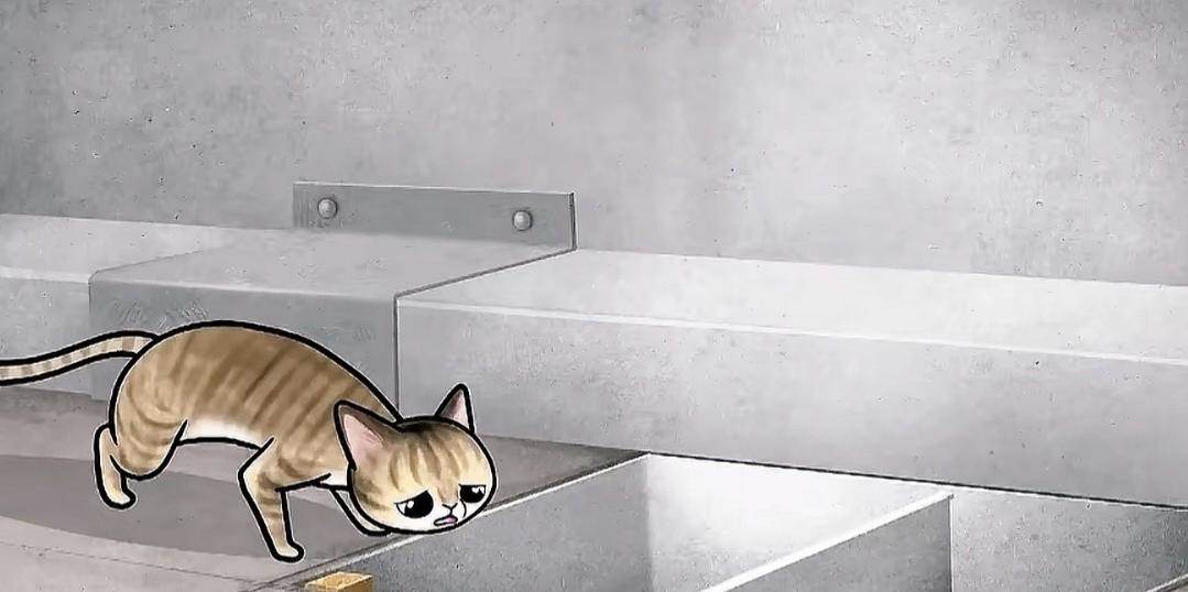 小姐姐樓上樓下仔細尋找,終于發現樓梯間的角落裡竟然藏著個洞,旁邊還有許多貓咪的小腳印。小姐姐猜測貓咪肯定是從這鑽進去的,穿過了天花板,結果掉進了柱子深處那要命的地方。