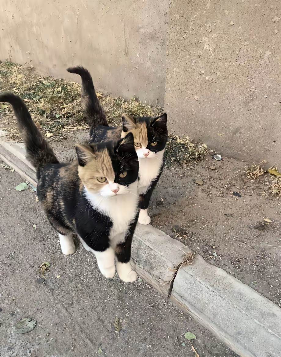 于是,漸漸有人猜想:這對貓咪,或許本來就有家。牠們乾淨的毛色、從容的姿態,不像經歷過風雨的流浪孩子,倒像是某戶人家悉心照顧的「小主人」,只是偶爾出門散步,享受自由時光。這個說法讓不少人放下心來,卻也忍不住好奇:是誰家這麼有福氣,擁有這樣一對靈氣逼人的貓咪?主人又怎麼放心讓牠們在外自在遊走?