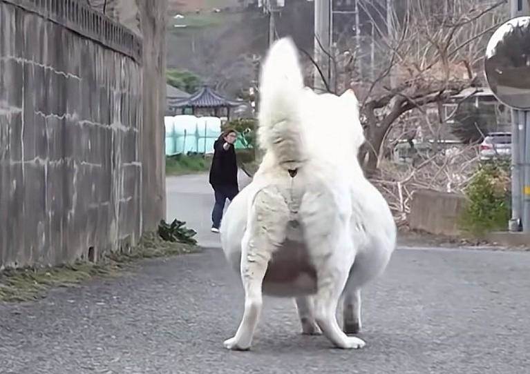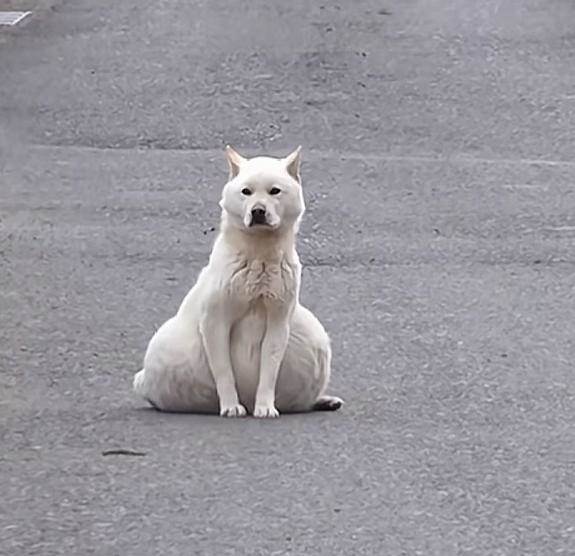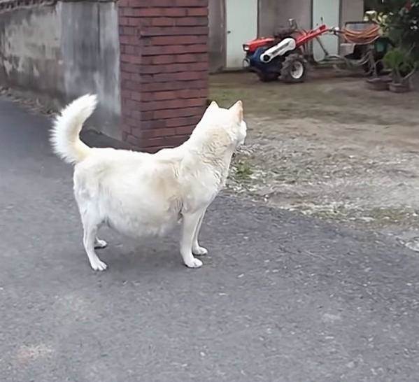 一條小白狗挺著個大肚子在馬路上艱難的行走,它懷了三年都沒生,肚子越來越大,每天拖著40斤的大肚子,一搖一擺的前行,每走幾步都要停下來休息,狗狗的臉上寫滿了悲傷。