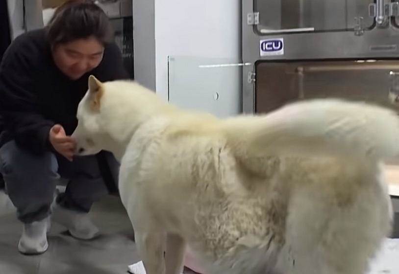 小姐姐實在不忍心小白狗這樣痛苦,立即聯絡了動物救援,狗狗對小姐姐毫無保留的信任在食物的引導下,小白竟自己走進了救援籠,然後被火速送往醫院。