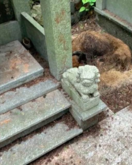 它就那樣靜靜守著,仿佛只是睡著了,還在陪伴著那個對它而言無比重要的人。不必追問,也不必猜測,那份跨越生死的陪伴已說明一切——這墓碑之下,大概是它窮盡一生都在等待與追隨的主人吧。不知它在這里守了多久,看過多少次日出日落,經過多少場風吹雨打,直到最后一點力氣用盡,它依然選擇留在這里,靠近離主人最近的地方。