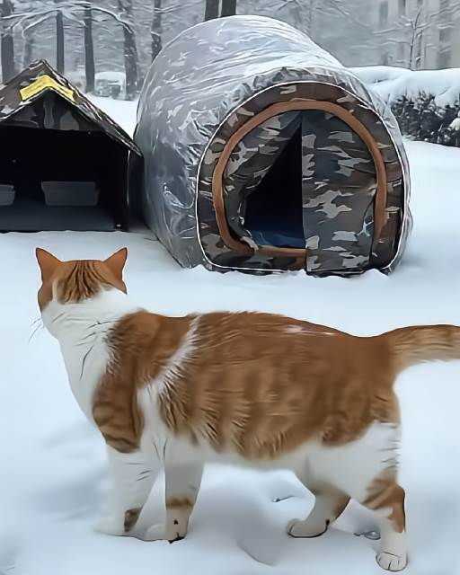 雨雪天氣是最難熬的。雪花飄進貓窩入口,融化成冰冷的水珠,讓本來就不夠溫暖的小空間變得溼冷。這時,我會多鋪一層防水墊,再加些乾燥的稻草。雖然不能完全隔絕寒意,但至少能給它們一片相對乾燥的棲身之所。