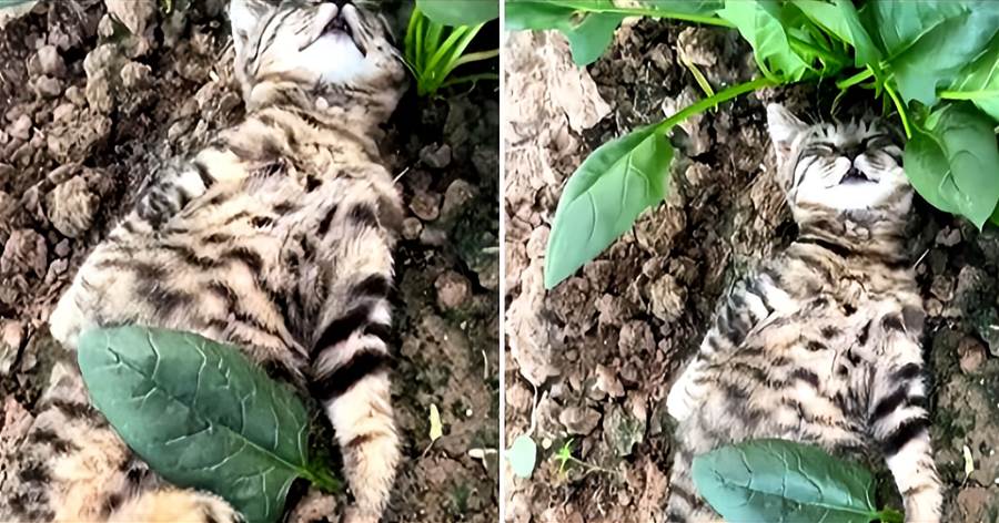 近日,一隻在菜園打盹的貓咪意外走紅。照片中,牠慵懶攤在泥地上,肚皮卻穩穩蓋著一片綠油油的菜葉,彷彿怕曬了太陽又怕漏了風。網友笑稱:「這習慣也太接地氣了,簡直是貓中養生專家!」