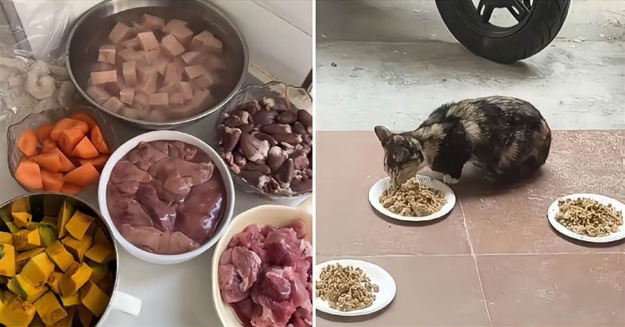 這段經歷讓小李下定決心自制貓飯。每天清晨,她會去市場採購新鮮雞肝、雞心、雞胸肉,搭配南瓜和胡蘿蔔,回家攪拌成糜狀後炒熟。這份特別的貓飯不僅香氣撲鼻,營養也更均衡。她餵養的流浪貓們從最初的瘦骨嶙峋,到如今毛髮油亮、體型勻稱,變化顯而易見。