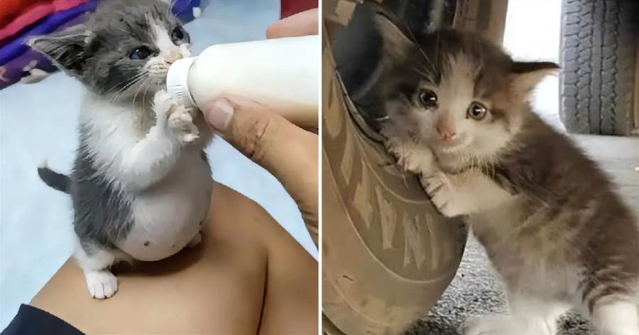 週五下班途中,我在路邊發現了牠——一隻灰白相間的小奶貓,眼睛還沒完全睜開,瘦得能看見肋骨。我心一軟,把牠帶回了家。