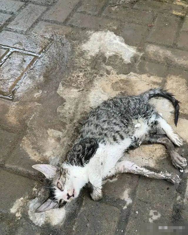 我揉著眼睛找了個舊紙箱,趿拉著拖鞋往樓下走。剛拐進電瓶車棚,就看見角落里縮著一團黑乎乎的東西 —— 渾身的毛被雨水泡得濕透,黏在身上,像塊臟抹布,小小的身子一動不動,看著確實沒了生氣。我心里有點發沉,蹲下來準備把它抱進紙箱,手剛碰到它,突然感覺那團 「抹布」 輕輕動了一下!