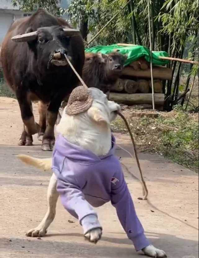 它小時候就是個闖禍精,用 「混世魔丸」 來形容都算是客氣的。村裡的老少爺們,就沒有沒被它禍害過的。張大爺家剛從河裡撈上來的甲魚,它趁人不注意,叼起來就跑;李嬸家剛殺好的鴨子,還沒來得及拔毛,就被它搶了個正著;就連隔壁王奶奶家剛出生的狗崽,它都敢在狗媽追咬的情況下,硬生生叼回自己窩。 最絕的一次,是它居然把鄰村老王家的牛給牽回了家!那天老王在地裡放牛,一扭頭的功夫,牛就沒影了。全村人幫忙找了半天,最後居然在我家院子裡,看到小寶正蹲在牛旁邊,尾巴搖得跟撥浪鼓似的,那架勢彷彿在說:「看,我給奶奶帶回來個大寶貝!」