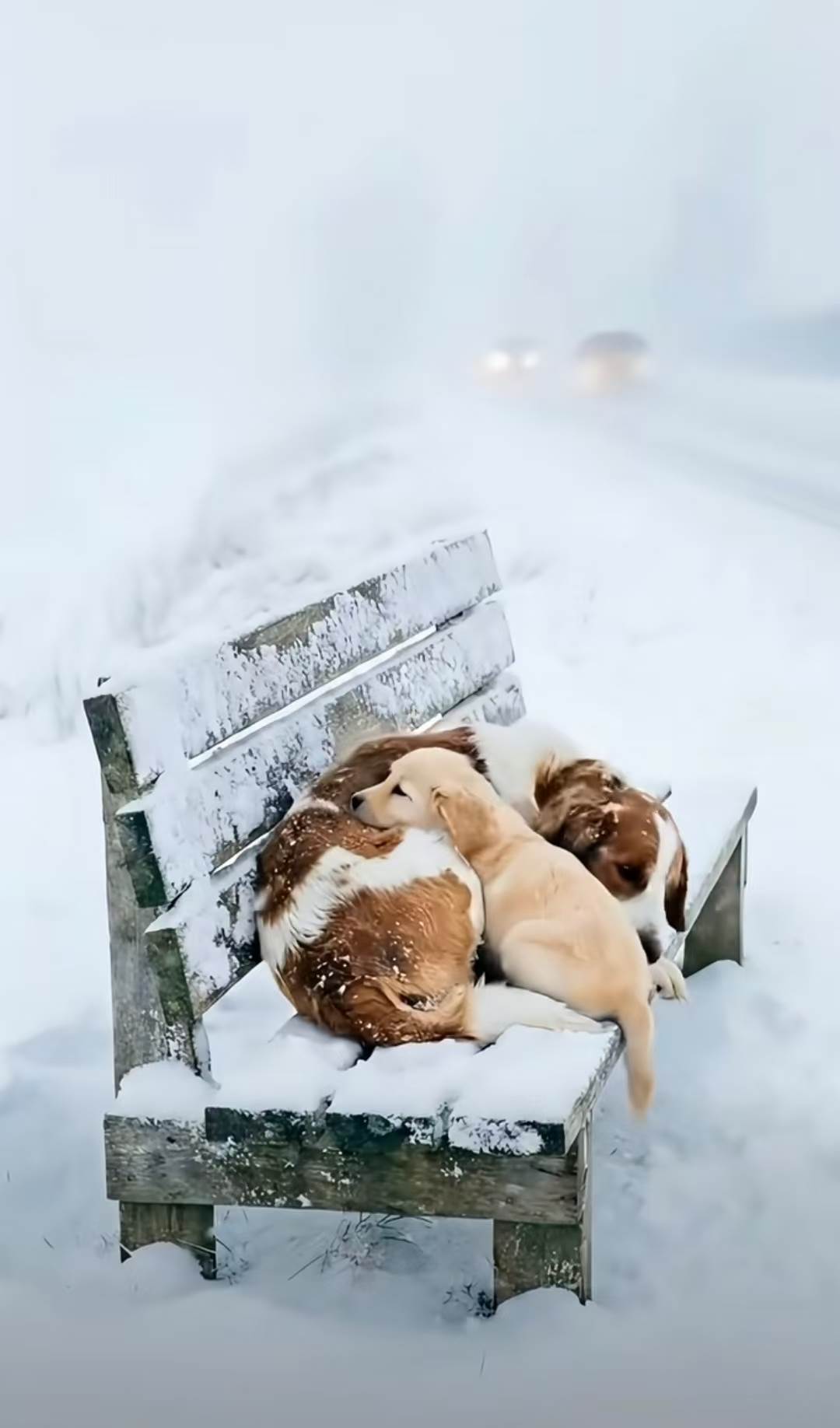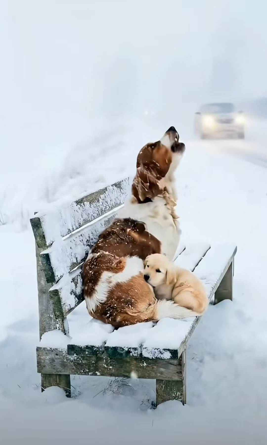寒風刺骨,雪花如刀片般刮過寂靜的馬路。在這個連行人都匆匆躲回家中的夜晚,一隻狗媽媽卻緊緊蜷縮在長凳上,用它瘦弱的身軀護著幾隻顫抖的小狗。它們被遺棄在這裡,彷彿世界的溫度都已凍結——直到一束車燈劃破雪幕,一場溫暖的奇蹟,悄悄降臨。