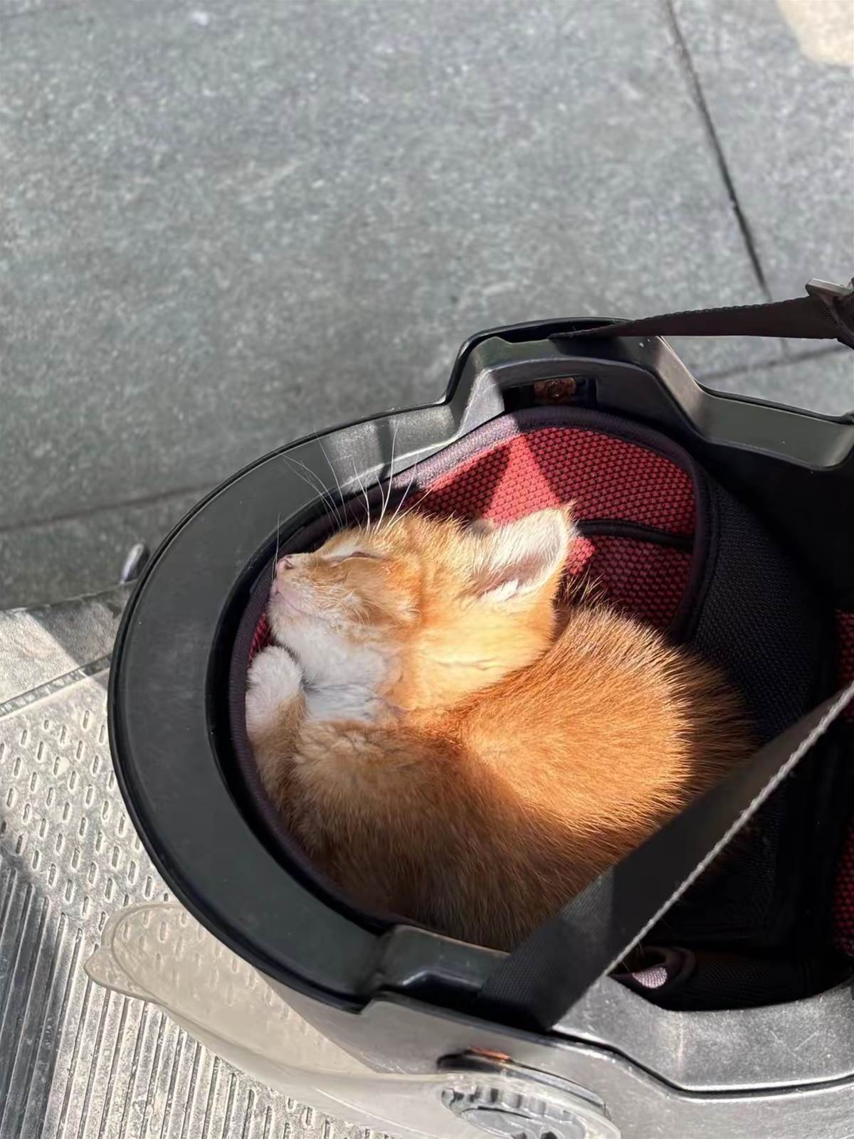 剛把機車停在菜市場門口,摸了摸安全帽還在車頭掛著,轉身就鑽進人聲鼎沸的市場裡。心裡盤算著媽媽交代的青菜、豆腐和一條活魚,腳步走得急,沒想到不過十分鐘的功夫,回來掀開安全帽的瞬間,整個人都愣在原地 —— 一團暖橘色的小毛球,正蜷在安全帽的紅色內襯裡,睡得天昏地暗。