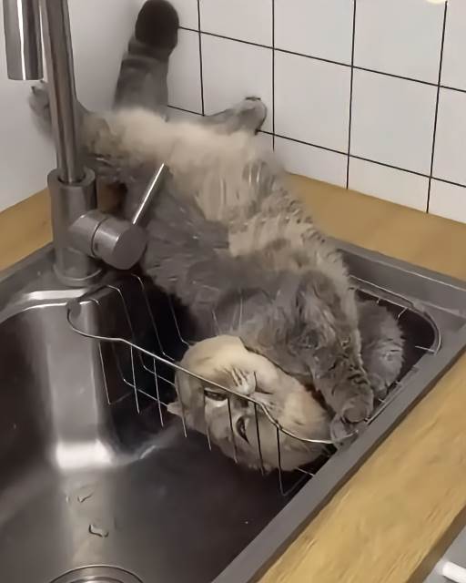 就在我準備出門尋找時,廚房傳來輕微的水聲。我快步走過去,眼前的景象讓我的心瞬間揪緊——牠竟然整個身子蜷在洗手池裡,一動也不動!「咪咪!」我大叫一聲,聲音都在發抖。牠卻毫無反應。