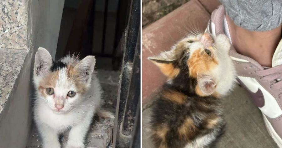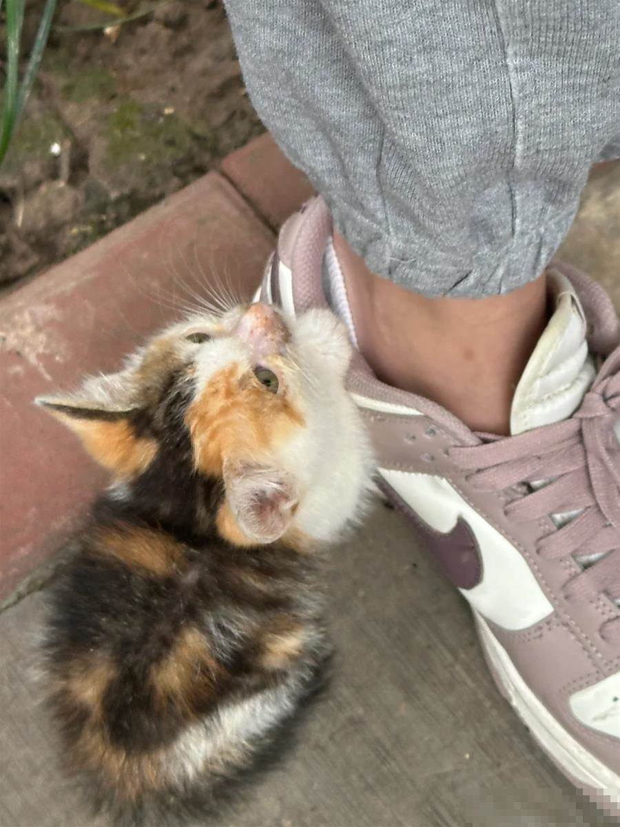 我住三樓,等我走到家門口掏鑰匙時,它已經蹲在我腳邊了。小小的身子縮成一團,毛被風吹得亂飄,卻還是仰著頭望我,喉嚨里發出輕輕的 「喵」 聲,聲音細弱卻執著。我蹲下來,試探著摸了摸它的頭,以為它會躲,可它不僅沒退,反而往我手心蹭了蹭,小腦袋輕輕頂了頂我的手指,帶著點溫熱的觸感。