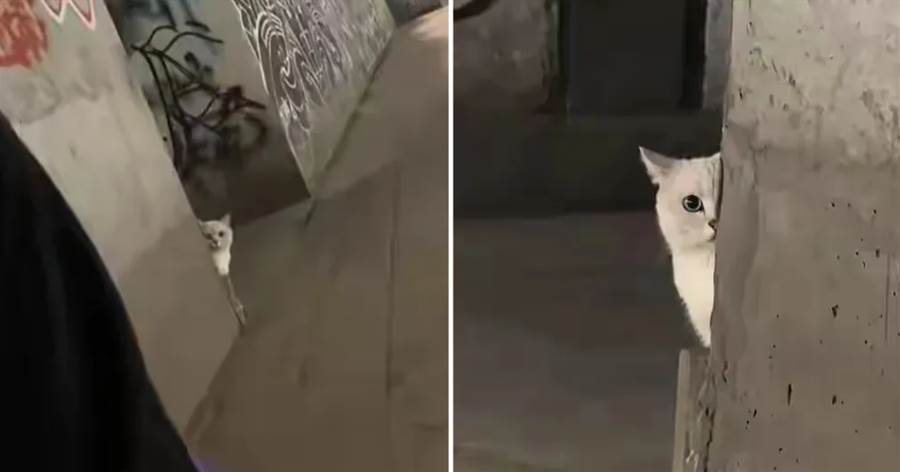 最近一個月,我發現常投喂的那只白色流浪貓,總在我下班路上偷偷跟著我。