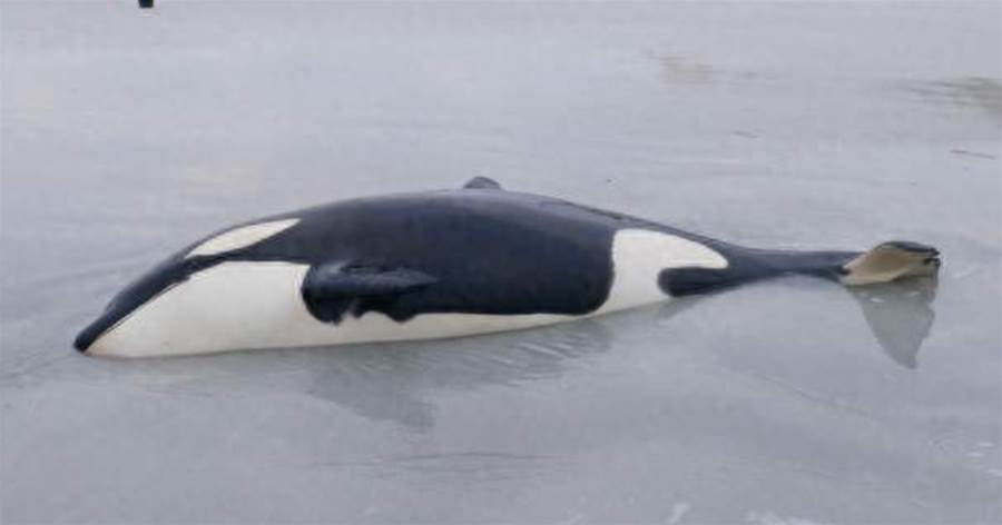 那天清晨,當地漁民約翰像往常一樣出海捕魚,剛駛離港口不遠,就瞥見淺灘處有個黑色的龐然大物。他趕緊靠岸檢視,驚得倒吸一口涼氣:是一頭虎鯨!它的身體大半陷在溼潤的沙地裡,長約 3.4 米的身軀在陽光下泛著油亮的黑灰色光澤,背鰭微微耷拉著,原本應該在深海中自由穿梭的它,此刻只能偶爾擺動一下尾鰭,發出低沉的 「嗚嗚」 聲,像是在求救。