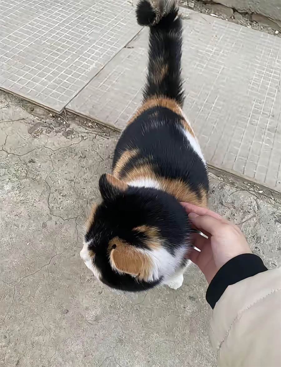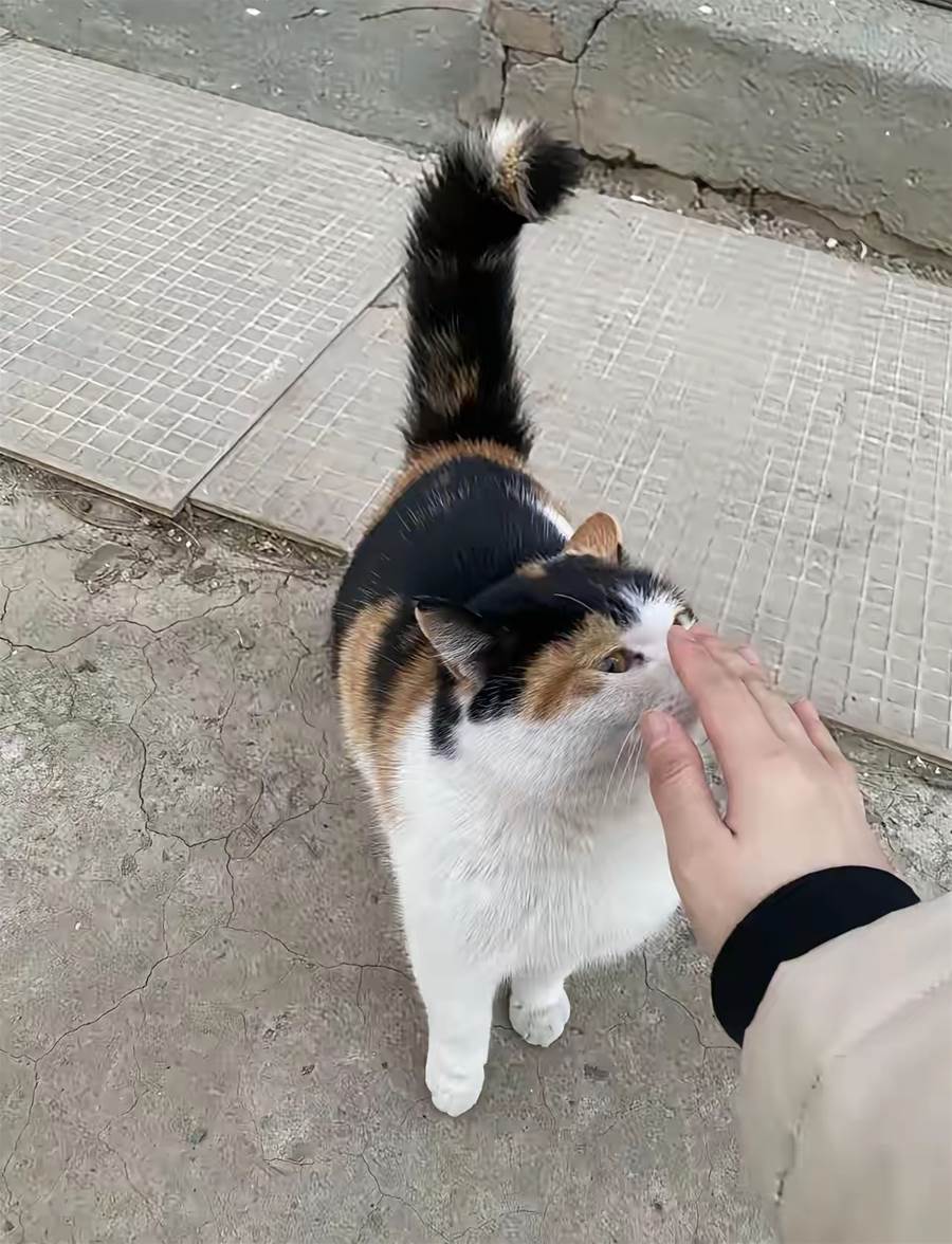 沒走幾步,我聽見身後有細細簌簌的動靜。回頭一看,一隻三花貓正跟在我身後幾步遠的地方,見我停下,它也停下來,抬起頭用那雙琥珀色的眼睛望著我。它身上的花紋像水墨畫一樣,白、橙、黑三種顏色不規則地交織著,尾巴高高翹起,步伐優雅得像個小公主。