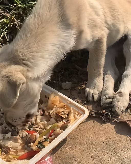 草堆裡面,竟然趴住一隻後腿殘障嘅狗狗!佢兩隻後腳完全唔能夠郁動,只可以靠前肢勉強拖行,身體不斷噉顫抖,哀鳴聲聽落好似喺度求救。小哥即刻心軟,諗都冇諗就拎出自己嘅午餐便當,蹲低身子慢慢餵過去。狗狗狼吞虎嚥食到津津有味,睇嚟已經餓咗好耐;食完之後,佢仲乖乖哋挨近小哥手邊,似係想討摸,但全身仍然震過不停,應該係後腿傷口痛到入心。