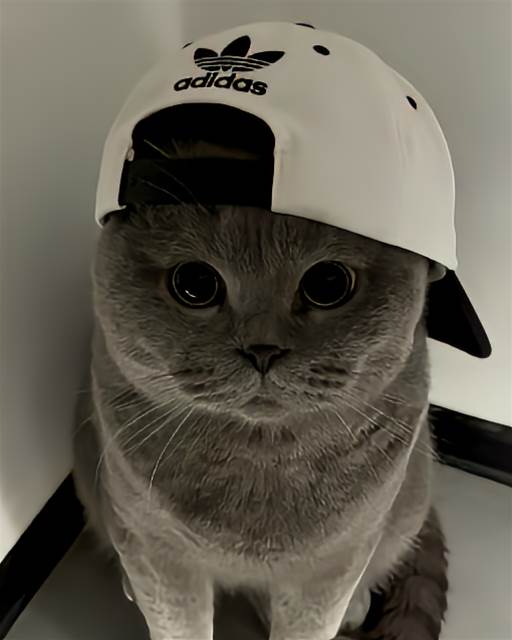 布布卻彷彿聽懂了我的疑惑,優雅地踱步過來,好奇地嗅了嗅帽子。伴侶輕輕將帽子戴在牠頭上,調整好尺寸。沒想到,布布不但沒有甩掉,反而瞇起眼睛,昂首挺胸,一副「朕很滿意」的模樣。淺灰色的毛配上棕色牛仔帽,意外地帥氣又可愛,瞬間把我們都逗笑了。