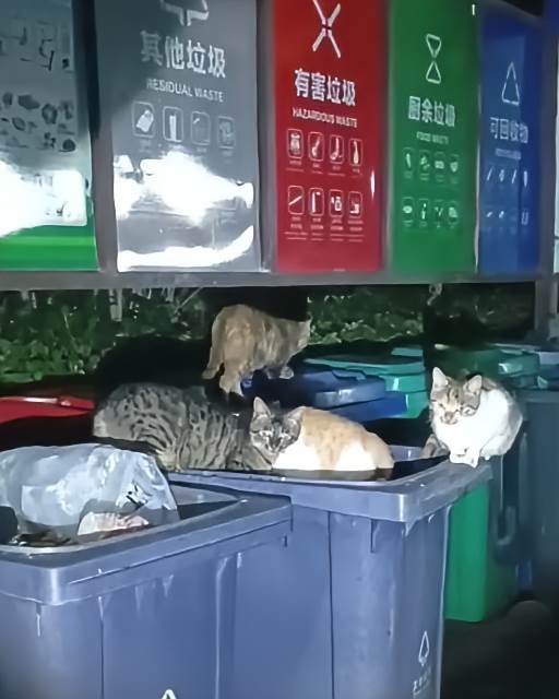 今晚的風,冷得刺骨。我拎著垃圾下樓,卻在街燈昏黃的光圈裡,看見了牠們——四、五隻流浪貓,正專注地在垃圾桶邊翻找著什麼。見我走近,牠們只是抬頭淡淡一瞥,沒有逃走,眼神裡沒有恐懼,只有一種習以為常的淡然。那一刻,我的心被輕輕揪了一下。這麼冷的夜,牠們要翻多久,才能找到一口勉強溫飽的殘羹?