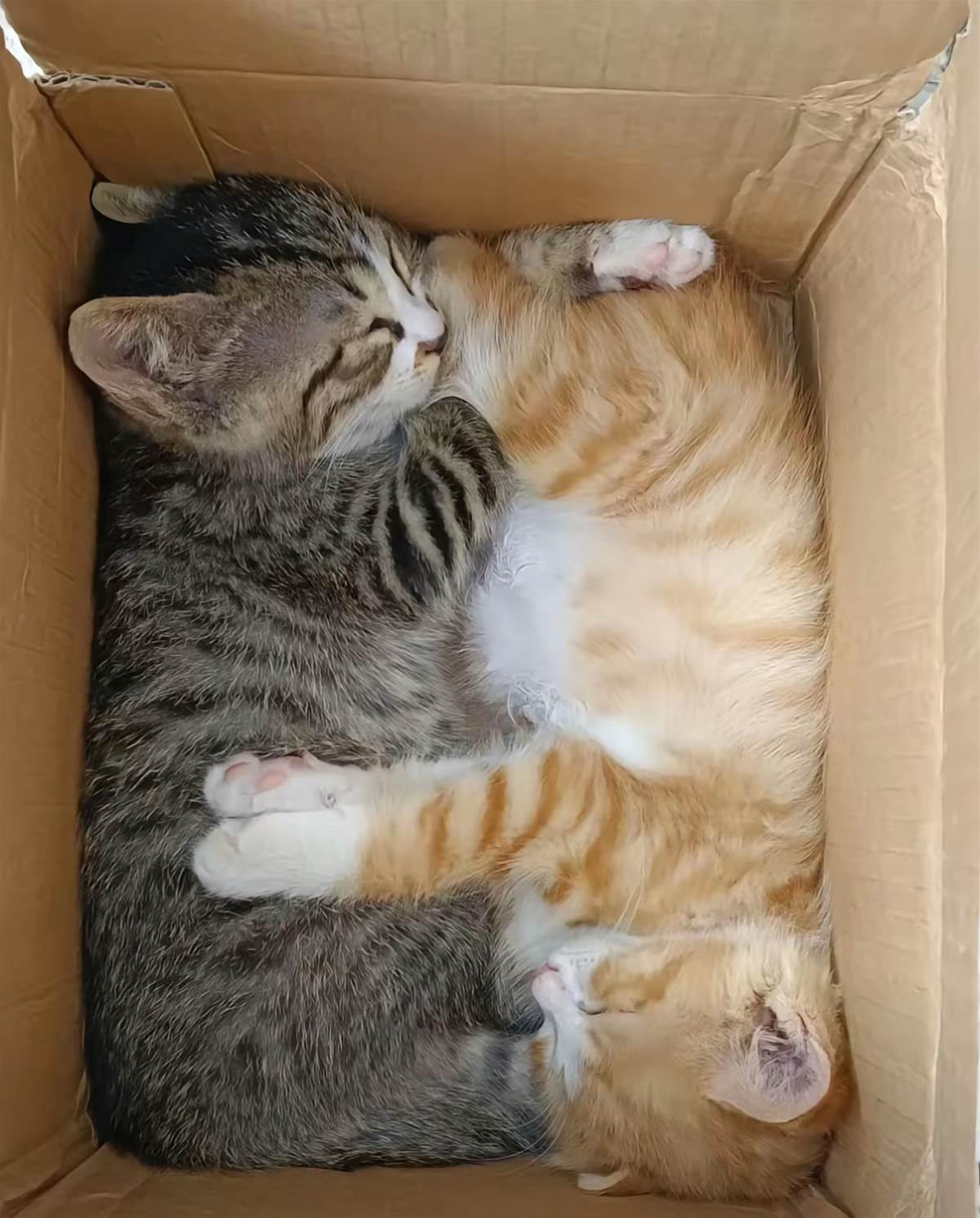 回到家,我趕緊找了個乾淨的紙殼箱,鋪了柔軟的毛巾,把它們放了進去。剛落地,兩隻小貓就立刻鑽到箱子深處,緊緊挨著彼此,不肯探出頭來,哪怕我輕聲安撫,也只敢在裡面怯生生地張望。我沒有過多打擾,只是默默在箱子旁放好溫水和幼貓糧,轉身坐在不遠處,靜靜陪著它們。