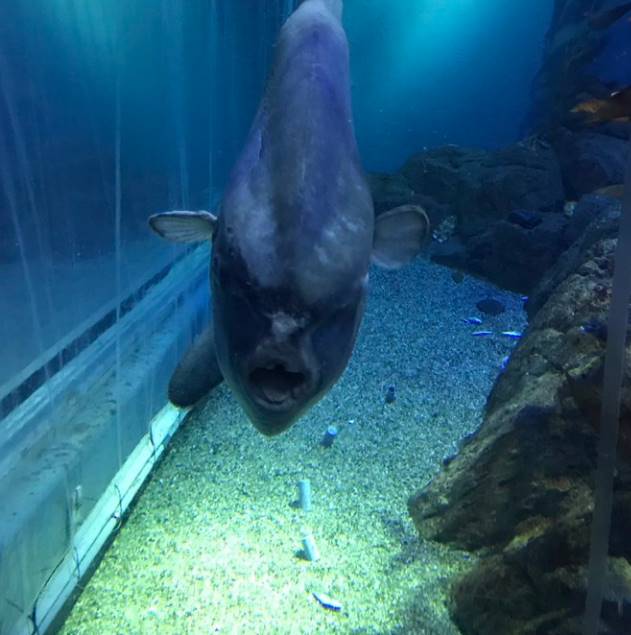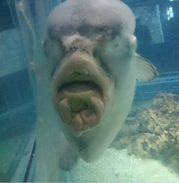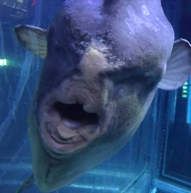 ▼網友在水族館拍攝到的「翻車魚」正面。