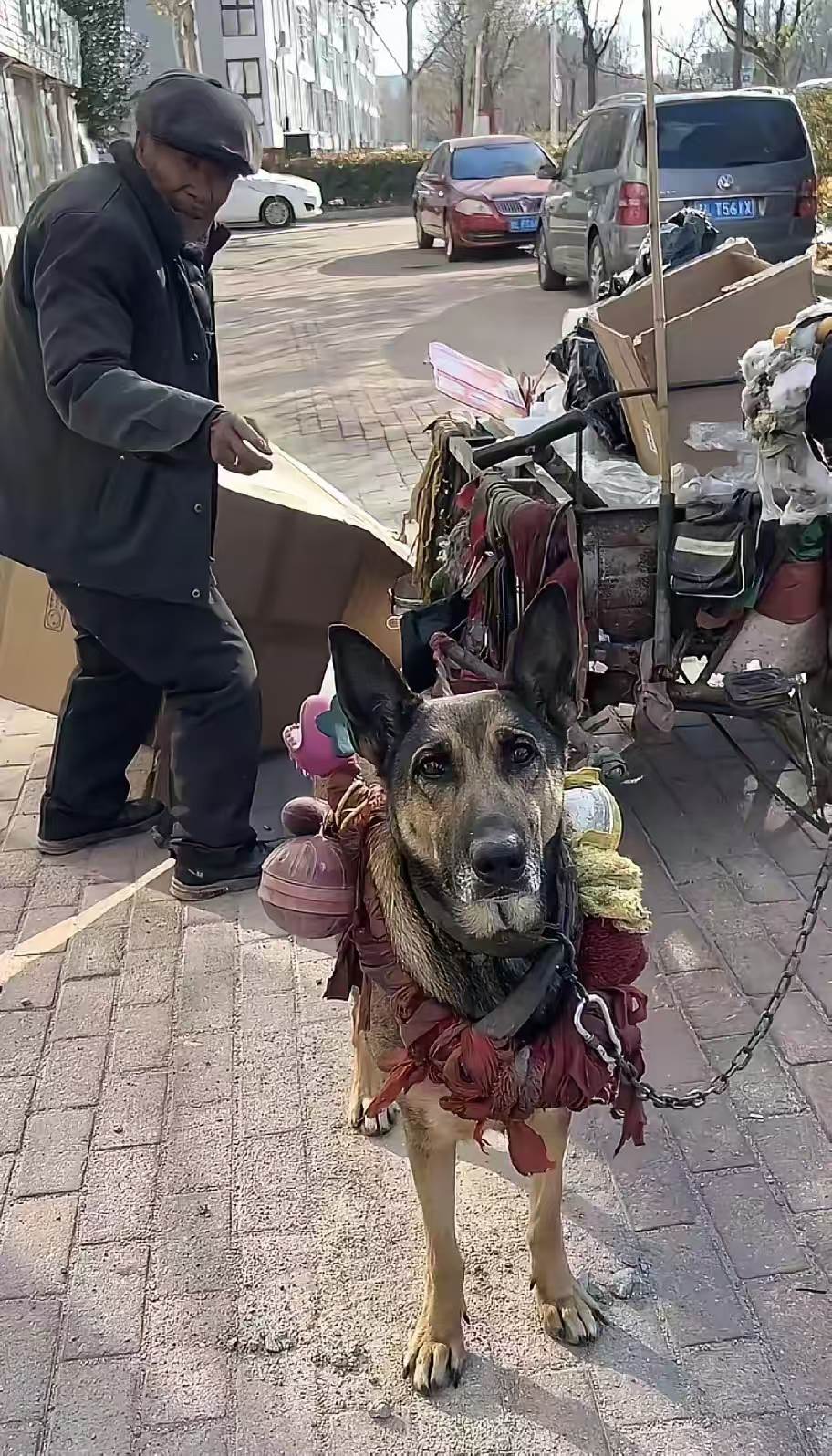 「剛開始它走路都晃,我就沒拴繩,讓它自由跑。可它總在前面幫我拉車頭,上坡時特別賣力。」老陳說著,黝黑的臉上露出溫暖的笑容。從那天起,一人一狗的組合就成了街巷裡獨特的風景。