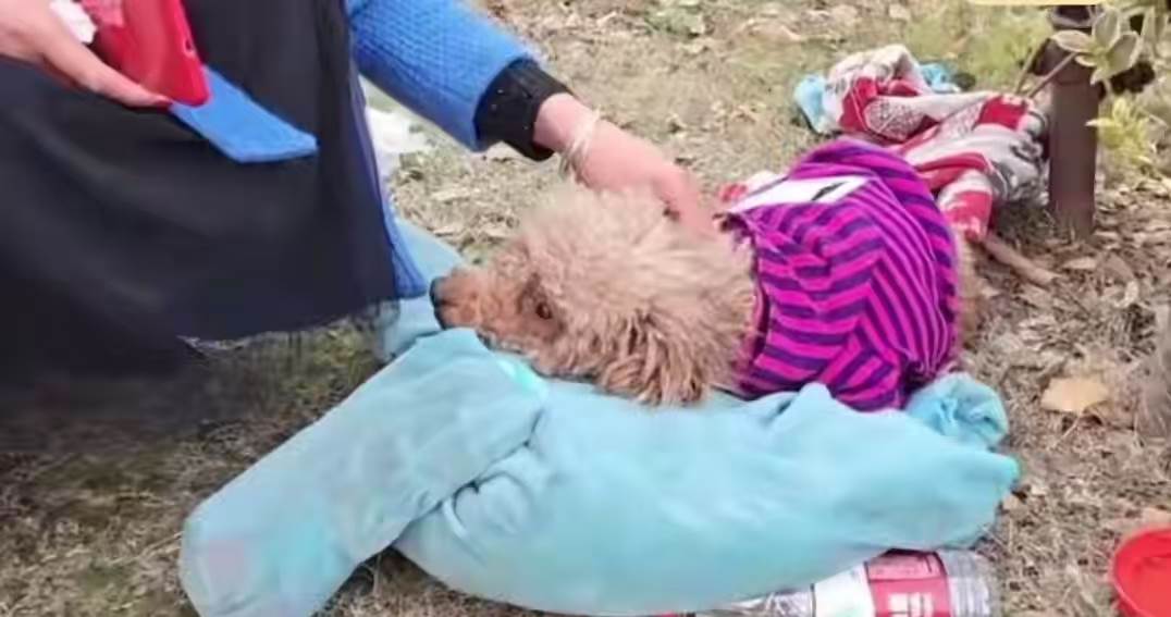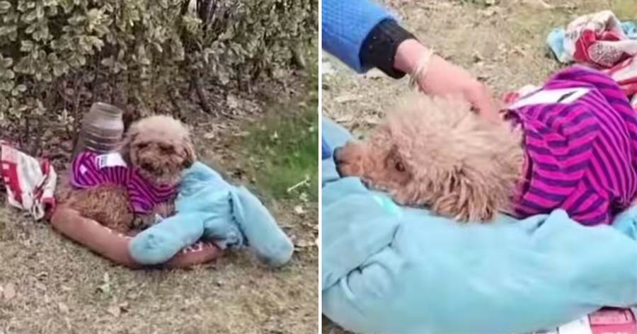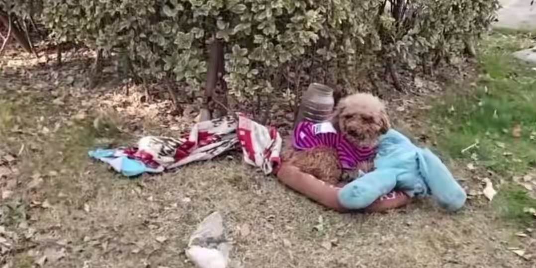 草坪角落,一團棕色的毛球微微顫抖著。走近一看,竟是只泰迪犬,身旁散落著一個褪色的寵物墊子和一個不鏽鋼飯盆。小狗抬頭望著她,圓溜溜的眼睛裡滿是惶恐與困惑,彷彿在問:「我的主人去哪了?」