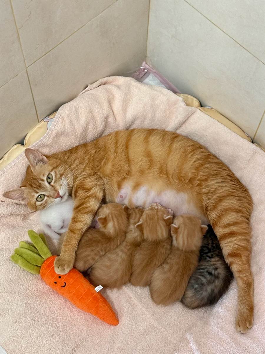 前一天,這窩小生命還是我家中最溫馨的風景。貓媽媽雖然產後略顯虛弱,但奶水充足,總是不厭其煩地舔梳著五隻小貓,每一聲細微的喵嗚都像在訴說新生的喜悅。我每天定時餵食、換水,看著牠們依偎的模樣,以為幸福會這樣緩緩延續下去。